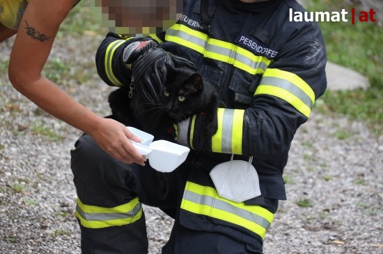Einsatzkräfte der Feuerwehr haben Montagnachmittag in Wels-Innenstadt eine Katze, die verletzt in einem gekippten Fenster eingeklemmt war, gerettet und zu einem Tierarzt gebracht.