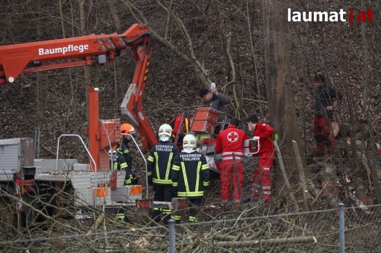 Bei Forstarbeiten hat sich Dienstagnachmittag ein Arbeiter in einer Hubarbeitsbühne verletzt. Feuerwehr, Rettung, Notarzthubschrauber und Polizei waren im Einsatz.