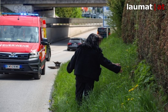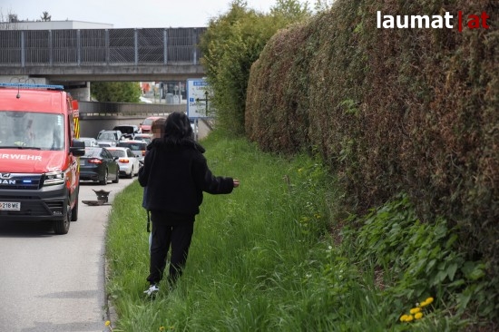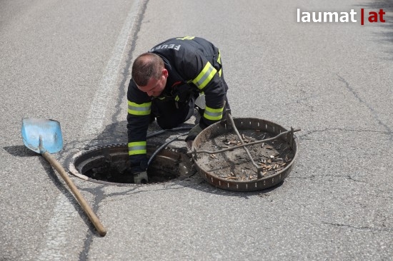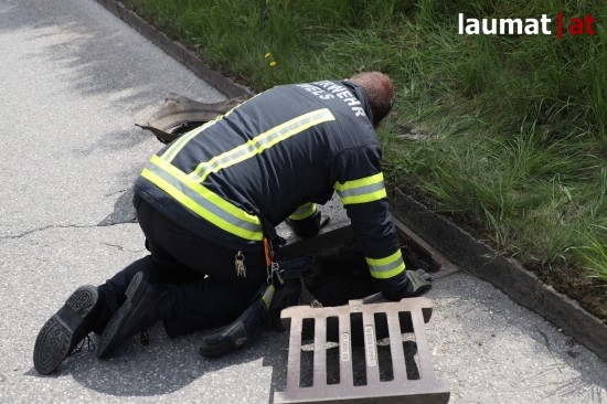 Einsatzkräfte der Feuerwehr konnten Donnerstagnachmittag in Wels-Vogelweide vier Entenküken aus einem Regenwasserschacht beziehungsweise Kanalrohr retten.