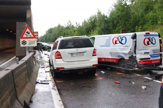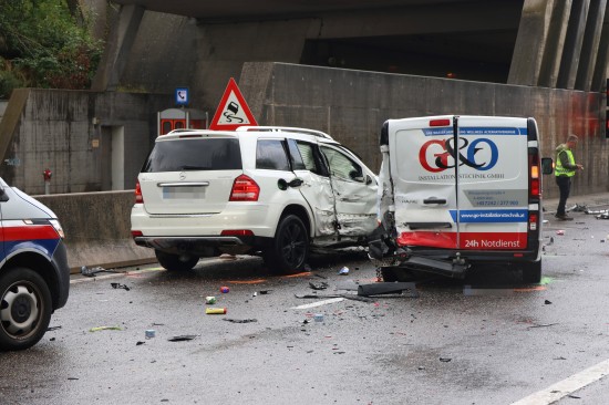 Steinhaus. Vier Fahrzeuge waren Freitagnachmittag auf der A8 Innkreisautobahn bei Steinhaus (Bezirk Wels-Land) in einen Unfall verwickelt. Mehrere Personen wurden leicht verletzt.
