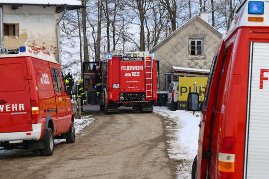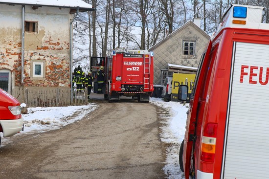 Die Einsatzkräfte von vier Feuerwehren wurden mit dem Einsatzstichwort "Brand landwirtschaftliches Objekt" gerufen. Offenbar beim Versuch vereiste beziehungsweise gefrorene Wasserleitungen aufzutauen, ist es auf einem Bauernhof in Ottnang am Hausruck zu einem Brand gekommen. Das Feuer beschränkte sich zum Glück auf den Bereich eines Schachtes unter dem Heuboden. Der Besitzer konnte den Brand mittels Gartenschlauch und mehreren Eimern Wasser bereits wieder soweit ablöschen, dass die eintreffenden Einsatzkräfte nur mehr Nachlöscharbeiten durchführen mussten.