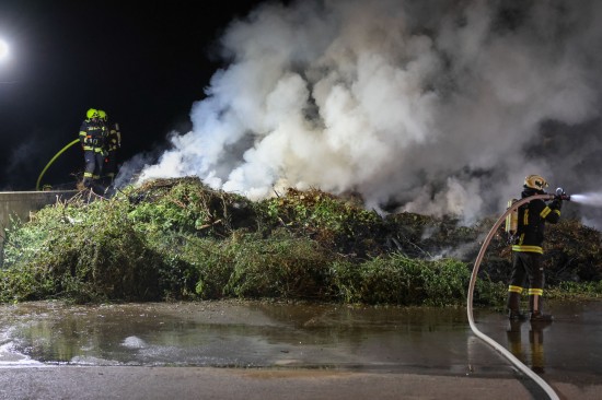 Ein Brand einer größeren Grünschnittsammelstelle in Sipbachzell (Bezirk Wels-Land) hat am späten Donnerstagabend zu einem Einsatz von insgesamt vier Feuerwehren gesorgt.