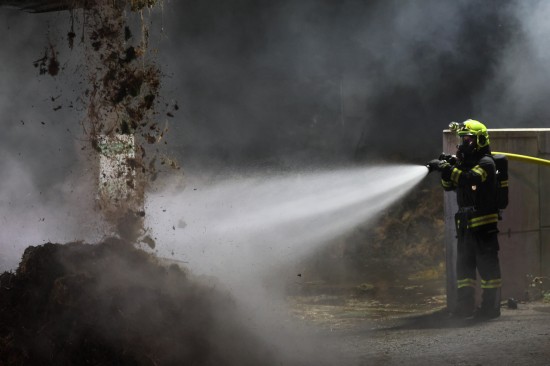 Vier Feuerwehren bei Brand einer größeren Grünschnittsammelstelle in Sipbachzell im Einsatz