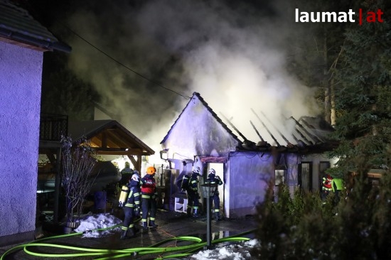 Vier Feuerwehren standen in der Nacht auf Montag in Grünburg (Bezirk Kirchdorf an der Krems) bei einem Brand eines Nebengebäudes neben einem Wohnhaus im Einsatz.