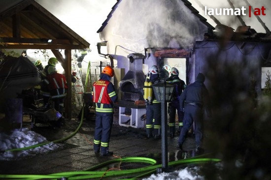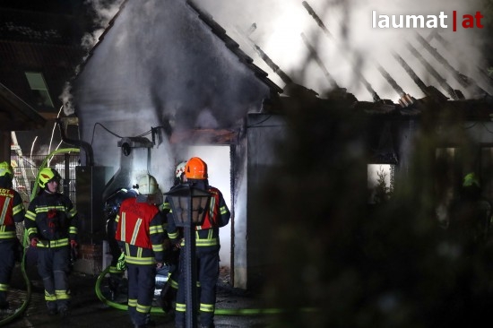 Vier Feuerwehren bei Brand eines Nebengebäudes in Grünburg im Einsatz