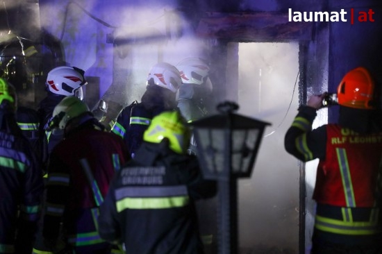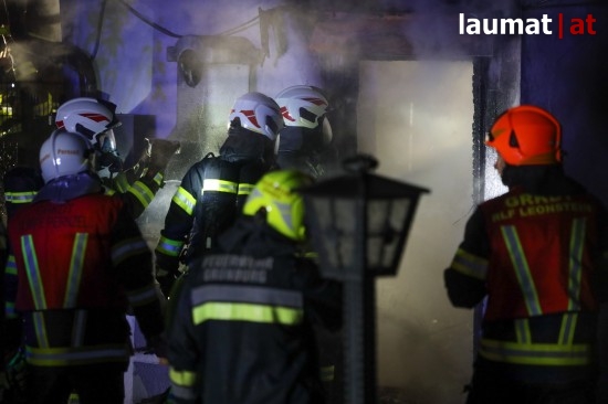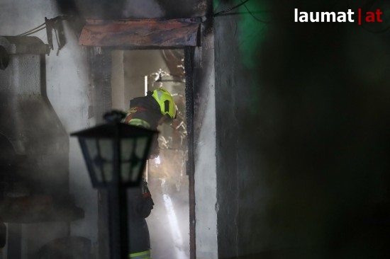 Die Einsatzkräfte von vier Feuerwehren wurden in der Nacht auf Montag mit dem Einsatzstichwort "Brand Wohnhaus" alarmiert. Ein Nebengebäude neben einem Wohnhaus im Ortszentrum von Grünburg stand in Flammen.