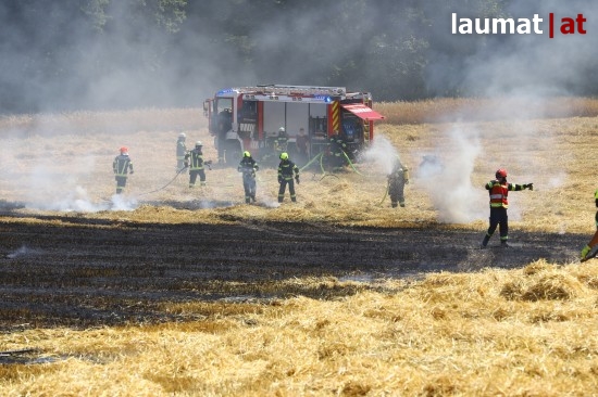 Thalheim bei Wels. Ein Feldbrand beschäftige Donnerstagnachmittag die Feuerwehren in Thalheim bei Wels (Bezirk Wels-Land). Vier Feuerwehren standen bei den Löscharbeiten im Einsatz.