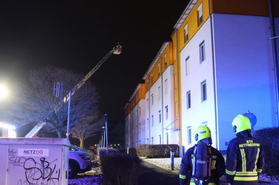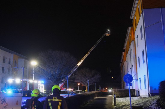 Ein Passant hatte offenbar im Dachbereich eines Mehrparteienwohnhauses eine verdächtige Rauchentwicklung wahrgenommen. Er verständigte eine Hausbewohnerin, die ihn in der Vermutung eines Brandes dann offenbar bestätigte. Vier Feuerwehren wurden mit dem Einsatzstichwort "Brand im Dachbereich" an die Einsatzörtlichkeit geschickt. Vor Ort konnte dann keine Rauchentwicklung wahrgenommen werden, zeitweise drückte es jedoch den Rauch aus einem Kamin etwas in Richtung Dachfläche. Eine Kontrolle der betroffenen Wohnhäuser durch die Einsatzkräfte sowie des Dachbereichs mittels Drehleiter verlief ohne Auffälligkeiten, sodass der Einsatz für die Feuerwehren, Rettungsdienst und Polizei nach rund einer halben Stunde beendet werden konnte.