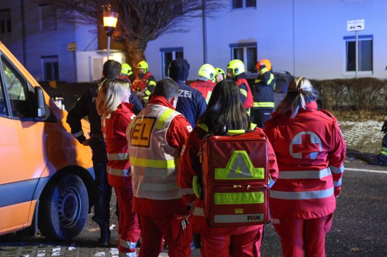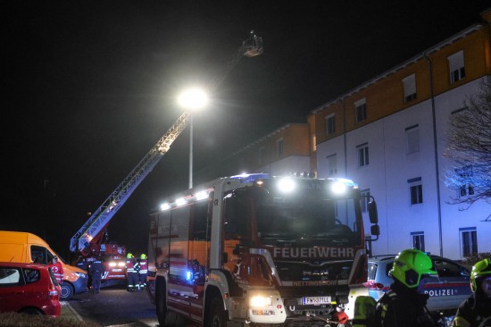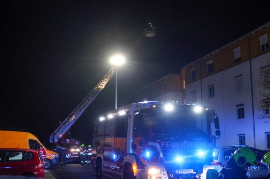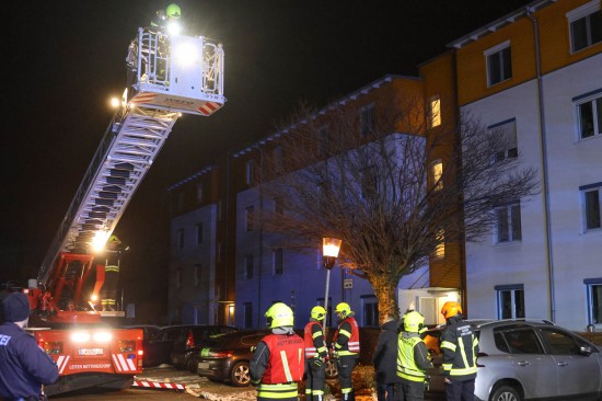 Vier Feuerwehren zu befürchteten Brand im Dachbereich einer Wohnanlage in Ansfelden alarmiert