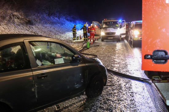 Vier Verletzte: Auto auf Innkreisautobahn bei Weibern gegen Betonmittelleitschiene geschleudert
