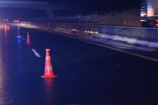Die A8 Innkreisautobahn war in Fahrtrichtung Passau, zwischen der Raststation Aistersheim und der Autobahnabfahrt Haag am Hausruck, im Bereich der Unfallstelle für etwa eine Stunde nur auf der Überholspur passierbar.