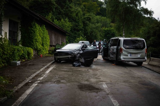 "Eine Zivilstreife war am 26. Juli 2023 gegen 09:20 Uhr auf der B148 Altheimer Straße Richtung Ried im Innkreis unterwegs. Dabei fiel ihnen im Gegenverkehr ein PKW mit polnischen Kennzeichen auf. Daraufhin wurde die Nachfahrt aufgenommen. Trotz deutlicher Anhaltezeichen flüchtete der unbekannte Lenker auf der L501 Weilhartstraße Richtung Hochburg-Ach mit weit überhöhter Geschwindigkeit. Im Ortsgebiet von Ranshofen kollidierte er in einer Kurve mit einem entgegenkommenden Fahrzeug. Er fuhr großteils auf der Gegenfahrbahn, teilweise linksseitig von Verkehrsinseln, sodass es immer wieder zu gefährlichen Situationen kam. Oftmals konnte nur durch Glück beziehungsweise Ausweichen des Gegenverkehrs ein Unfall verhindert werden. Kurz vor der Grenze Hochburg-Ach und Burghausen touchierte er in einer Rechtskurve die linke Leitschiene und kollidierte frontal mit einem entgegenkommenden Fahrzeug. Anschließend flüchtete der Schlepper zu Fuß Richtung Grenzübergang. Er sprang über ein Brückengeländer in ein Bachbett. Etwa 30 Minuten danach konnte er in einem stark bewachsenen Waldstück liegend vorgefunden werden. Er war leicht verletzt und musste durch die Beamten geborgen werden. Der Schlepper, ein 26-jähriger aserbaidschanischer Staatsbürger, wurde gegen 10:20 Uhr festgenommen. Insgesamt befanden sich sieben afghanische Flüchtlinge, darunter drei männliche Jugendliche, eine Frau sowie drei Kinder, in dem Schlepperfahrzeug. Bei den beiden Unfällen wurden insgesamt sieben Personen leicht beziehungsweise unbestimmten Grades verletzt. Ein Flüchtlingskind kam mit schweren Verletzungen in das InnKlinikum Altötting", berichtet die Polizei.