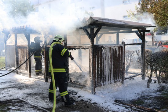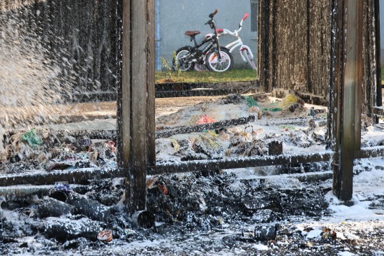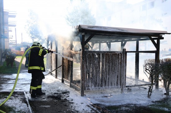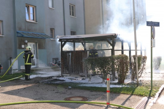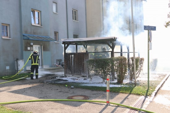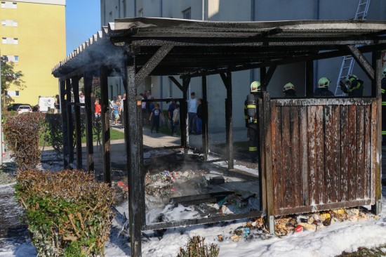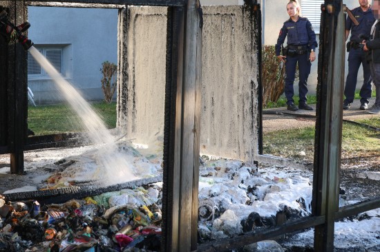 Wels. Ein Brand einer Müllinsel vor einer Wohnanlage in Wels-Neustadt hat am Samstagnachmittag für einen längeren Einsatz von Feuerwehr und Polizei gesorgt. Der Schaden ist beträchtlich.