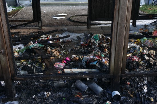 Vollwärmeschutz hinter Fassade durch Hitzestrahlung geschmolzen