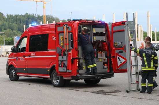 Die Feuerwehr wurde zur Unterstützung bei der Sicherstellung zweier Kennzeichentafeln im Welser Mühlbach durch die Polizei alarmiert. Ein Bergeversuch von der Brücke aus scheiterte vorerst, sodass ein Taucher zum Einsatz kam. Die Kennzeichen konnten dann rasch geborgen werden. Die Polizei ermittelt.