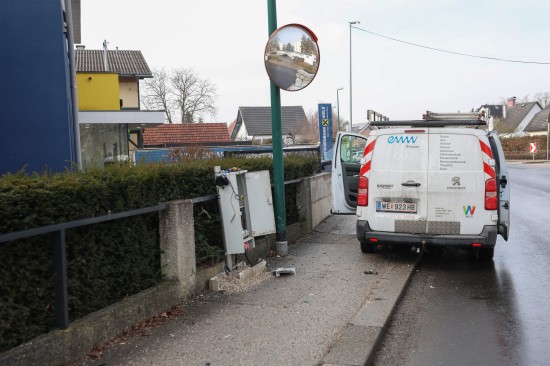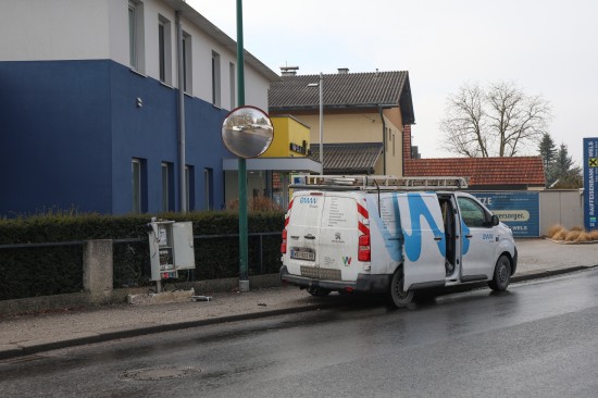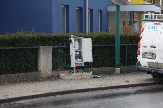 Ein bislang unbekannter Autolenker hat in der Nacht auf Freitag in Wels-Vogelweide eine Schaltstelle der Straßenbeleuchtung gerammt. Das schwer beschädigte Auto ließ der Unfalllenker dann zurück.
