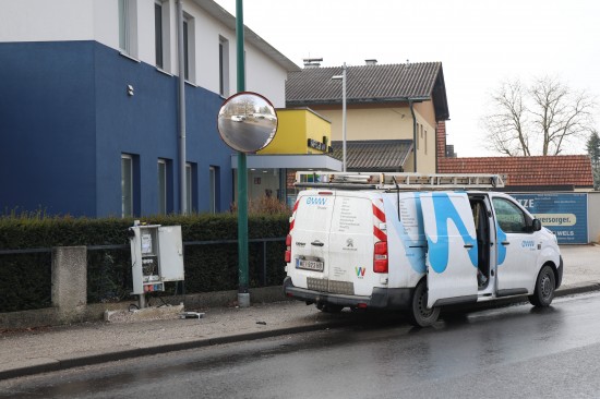 Wels-Vogelweide: Autolenker krachte gegen Schaltstelle der Straßenbeleuchtung und ließ PKW zurück
