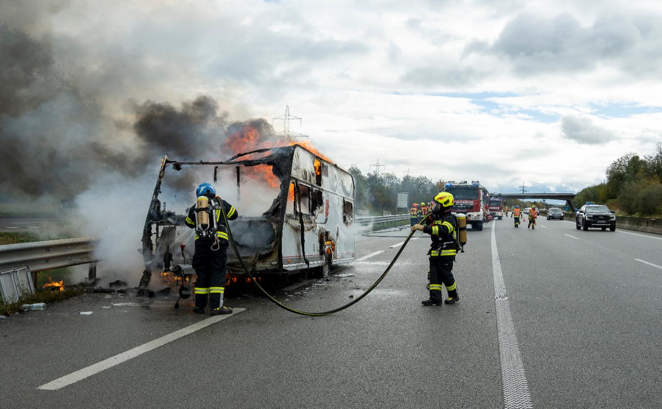 "Ein 44-Jähriger aus dem Bezirk Wels-Land fuhr mit seinem PKW samt Anhänger am 26. Oktober 2026 gegen 11:50 Uhr auf der A8 Innkreisautobahn Richtung Suben. Im Bereich der Auffahrt Haag am Hausruck bemerkte der Lenker plötzlich eine Rauchentwicklung im Bereich des rechten Reifens des Wohnanhängers. Er hielt das Fahrzeug am Pannenstreifen an, um den Schaden zu begutachten. Dabei sah er bereits Flammen im Bereich des Reifens. Der 44-Jährige verständigte sofort die Feuerwehr und versuchte das Feuer noch mittels Handfeuerlöscher zu löschen. Da dies jedoch aussichtslos erschien, löste er den Anhänger vom Fahrzeug und brachte dieses aus dem Gefahrenbereich. Außerdem konnte er noch eine Gasflasche aus dem Wohnanhänger entnehmen. Als die zwei alarmierten Feuerwehren eintrafen, stand der Anhänger bereits in Vollbrand. Laut Auskunft des Lenkers dürfte eine hängengebliebene Bremse den Brand ausgelöst haben. Die Fahrbahn Richtung Suben war für die Dauer von etwa einer Stunde nur über den linken Fahrstreifen befahrbar. Es kam daher zu einer kurzen Staubildung."