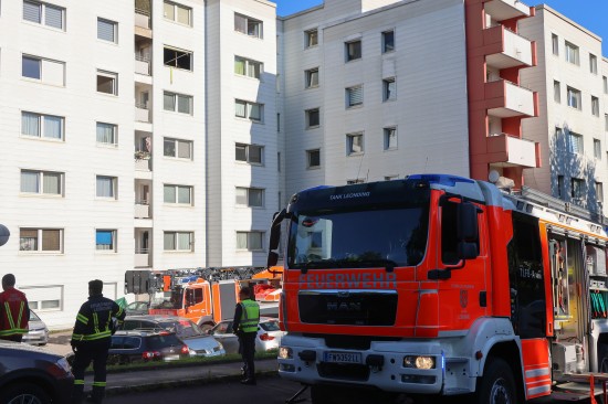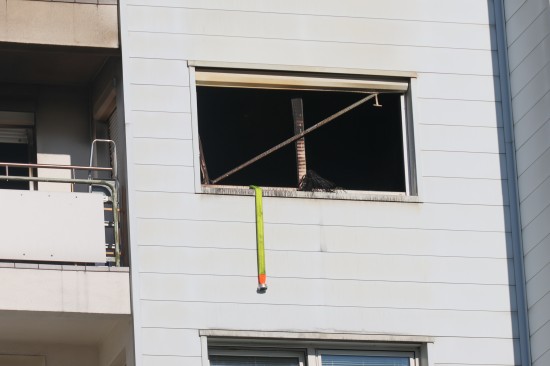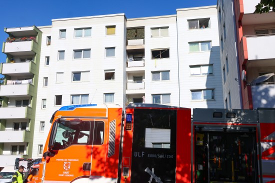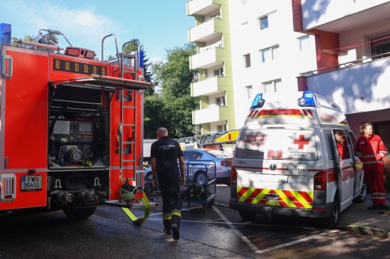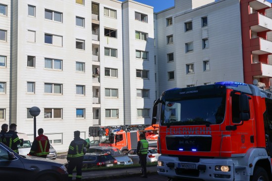 Wohungsbrand in Leonding: Person aus fünftem Stock gerettet - Hund überlebte Brand nicht