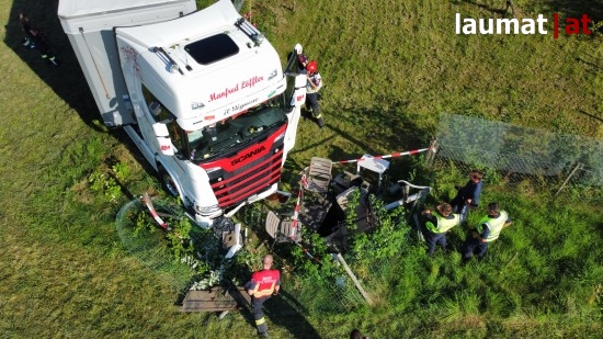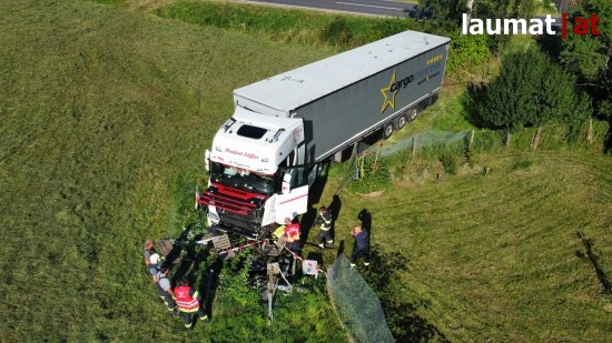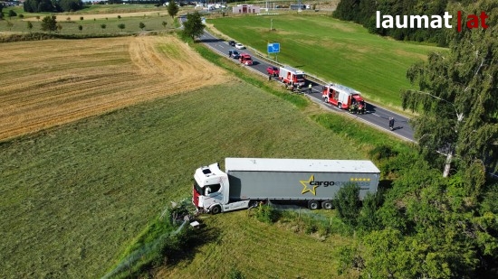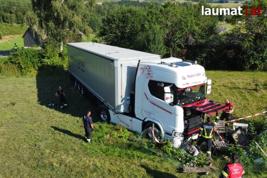 "Am 16. August 2022 ereignete sich gegen 16:00 Uhr ein Verkehrsunfall mit Personenschaden auf der B125 Prager Straße. In Freistadt lenkte ein 47-Jähriger aus der Steiermark seinen LKW in Fahrtrichtung Rainbach im Mühlkreis. Unmittelbar nach dem Ortsgebiet Freistadt wurde der LKW in einer leichten Rechtskurve aus bislang ungeklärter Ursache nach links auf die Gegenfahrbahn abgetragen. Der 37-jährige Autolenker aus dem Bezirk Freistadt, der ihm entgegenkam, versuchte nach rechts auszuweichen und kam dabei von der Fahrbahn ab. Ein Zusammenstoß der beiden Fahrzeuge konnte nicht verhindert werden. Der PKW überschlug sich und blieb mehrere Meter nach der Unfallstelle neben der Fahrbahn liegen. Der LKW kam ebenfalls links von der Fahrbahn ab durchbrach zwei Zäune und kam ca. 50 Meter nach der Unfallstelle in einer Wiese zum Stillstand. Nach der Erstversorgung durch die Rettungskräfte wurden beide Unfalllenker mit Verletzungen unbestimmten Grades in das Klinikum Freistadt gebracht", so die Polizei.