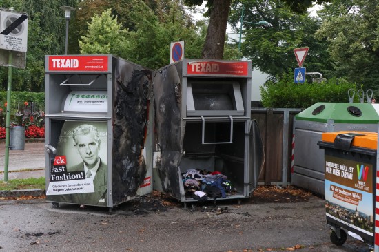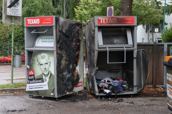 Wels. In Wels-Innenstadt haben am späten Freitagabend zwei Altkleidercontainer gebrannt, das gab die Feuerwehr am Samstag bekannt.