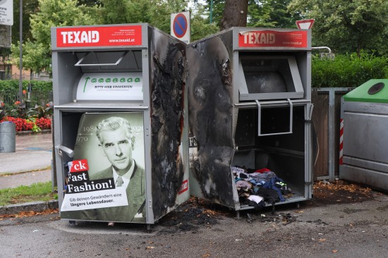Zwei Altkleidercontainer in Wels-Innenstadt bei Brand schwer beschädigt