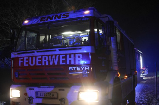 Zwei Feuerwehren bei Brand im Heizraum eines landwirtschaftlichen Gebäudes in Enns im Einsatz