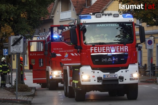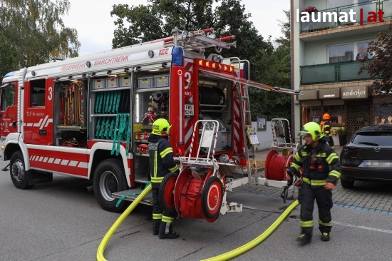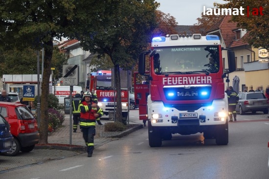 Zwei Feuerwehren zu befürchtetem Brand bei einem Wohn- und Geschäftsgebäude in Marchtrenk alarmiert
