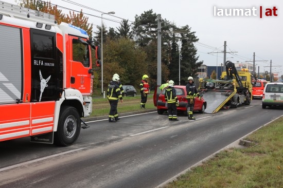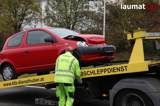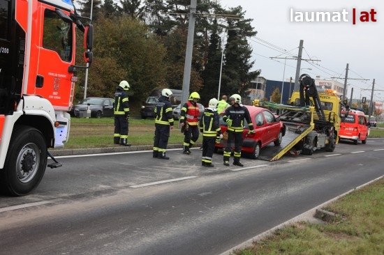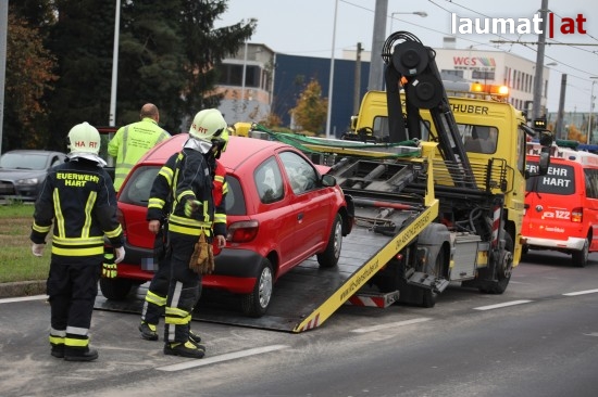 Die Einsatzkräfte der Feuerwehr wurden zur Menschenrettung alarmiert, da sich bei einem Unfallfahrzeug vorerst die Türe nicht öffnen ließ. Die beiden Unfallbeteiligten erlitten ersten Angaben zufolge vermutlich leichte Verletzungen. Feuerwehr, Rettungsdienst und die Polizei standen im Einsatz. Die Feuerwehr sicherte die Unfallstelle ab und band ausgelaufene Betriebsmittel.