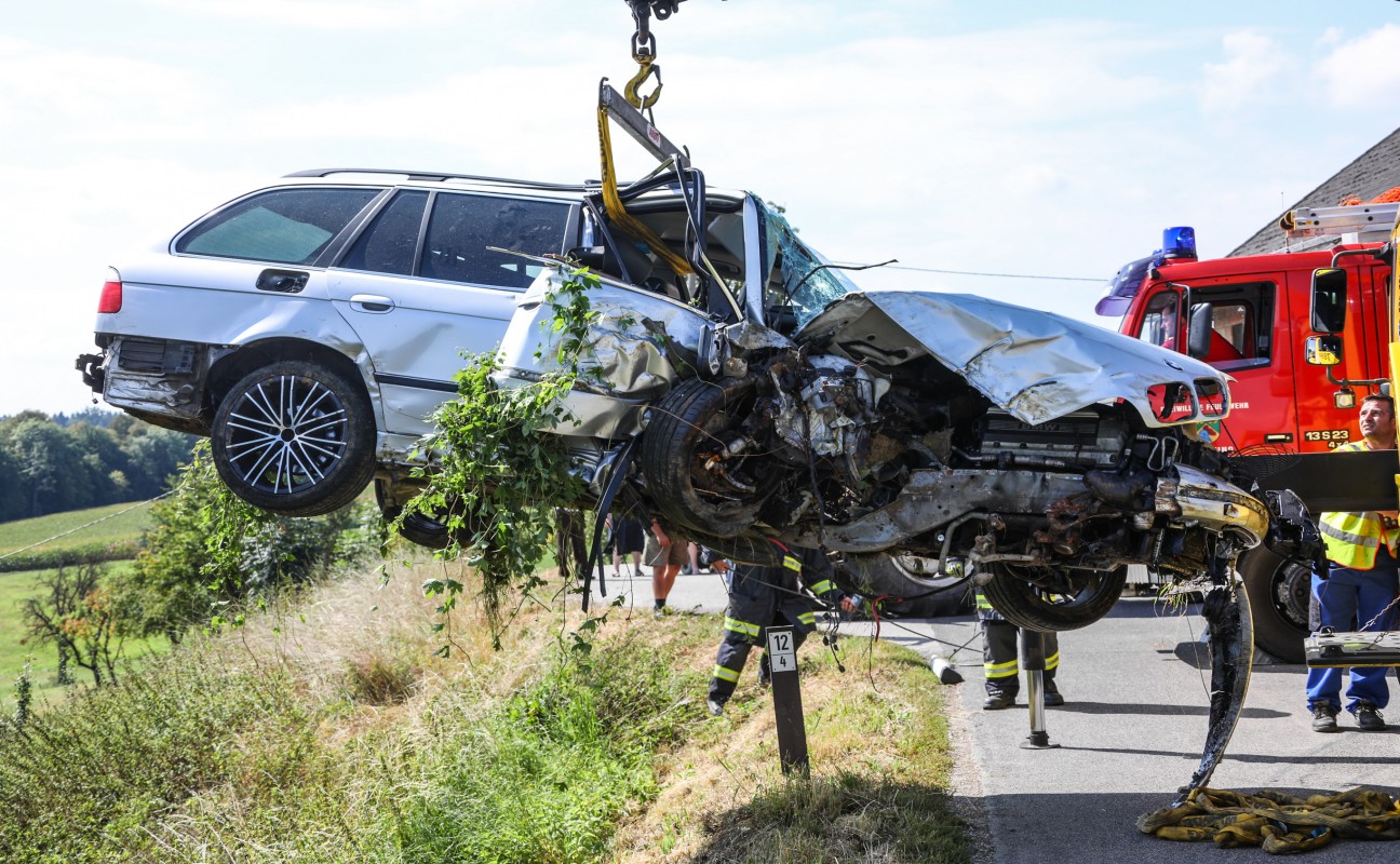 Auto bei Unfall in Allhaming mehrmals über steile Böschung überschlagen