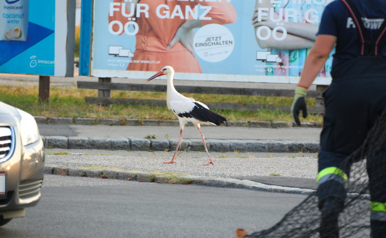 Verirrter Storch sorgt für Einsatz der Feuerwehr in Wels-Innenstadt
