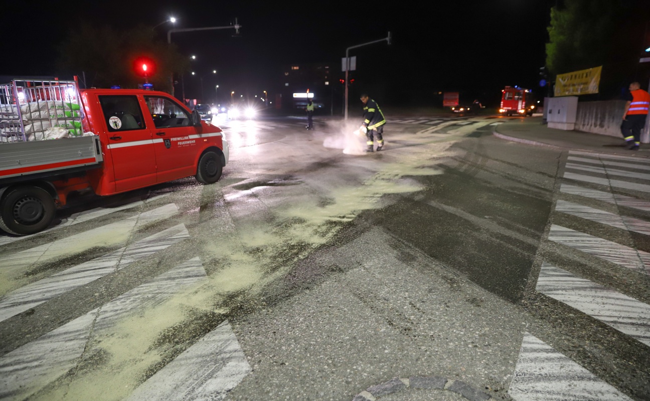 LKW verlor Speiseöl: Kilometerlange Ölspur musste gebunden werden