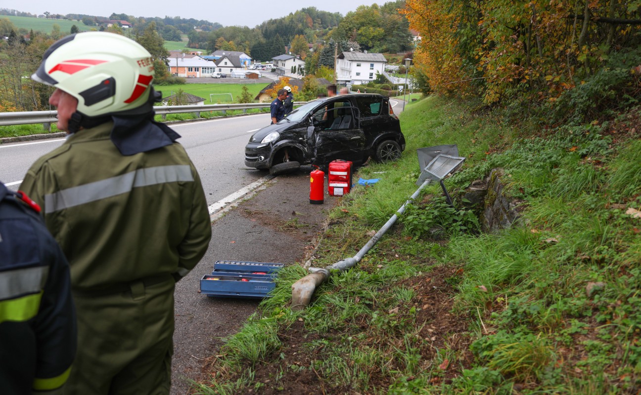 Mopedauto bei Verkehrsunfall in Sipbachzell gegen Straßenlaterne gekracht