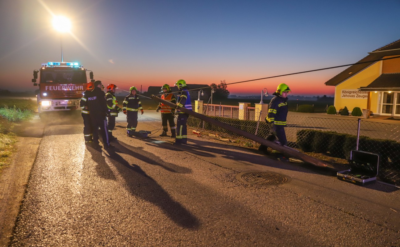 Umgefahrener Telefonmast in Marchtrenk durch Feuerwehr entfernt