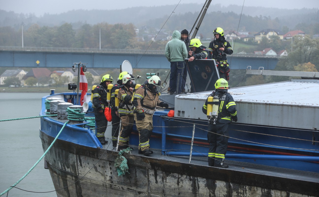 Brand auf einem Frachtschiff auf der Donau bei Aschach an der Donau
