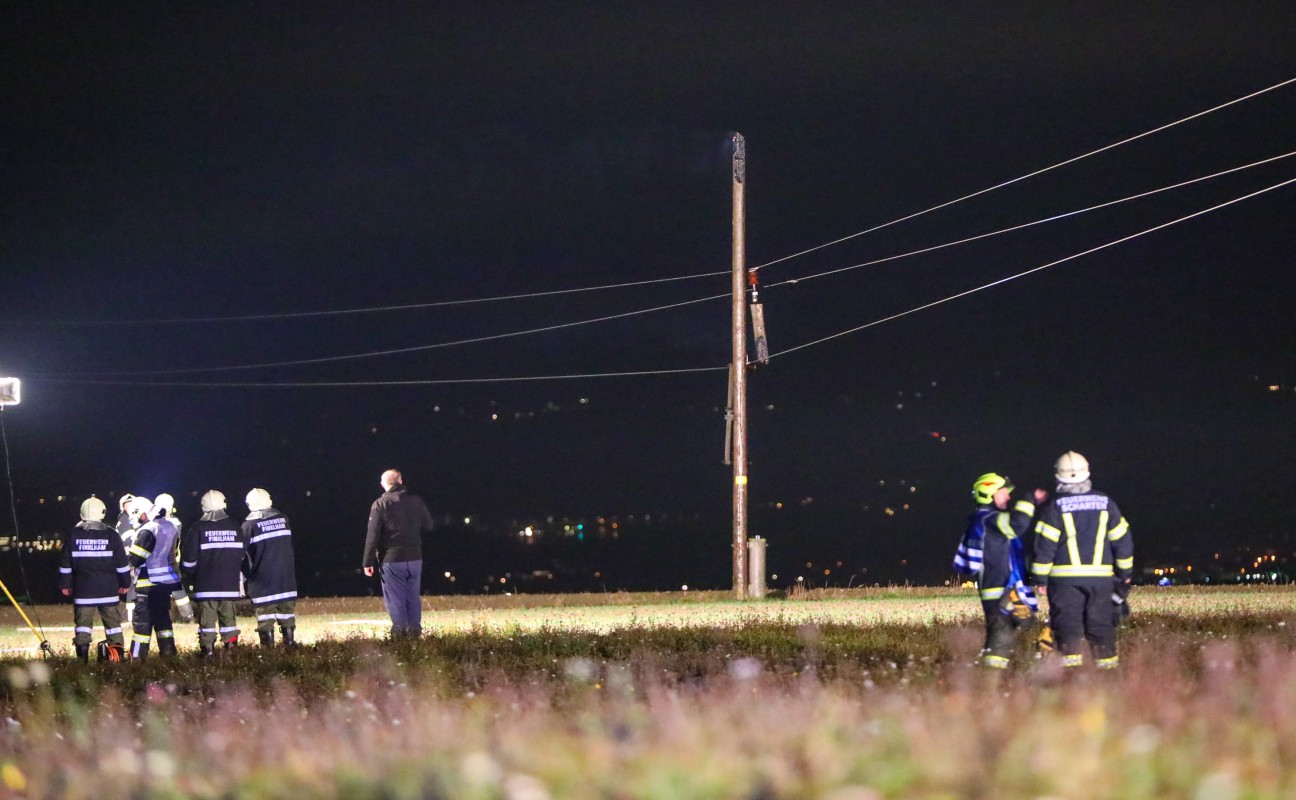 Brennender Strommast einer Mittelspannungsleitung in Scharten