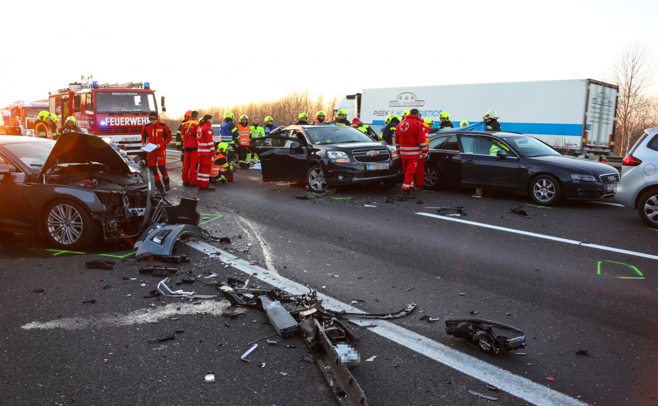 Schwerer Crash mit vier beteiligten Autos auf Welser Autobahn bei Pucking fordert zwei Verletzte