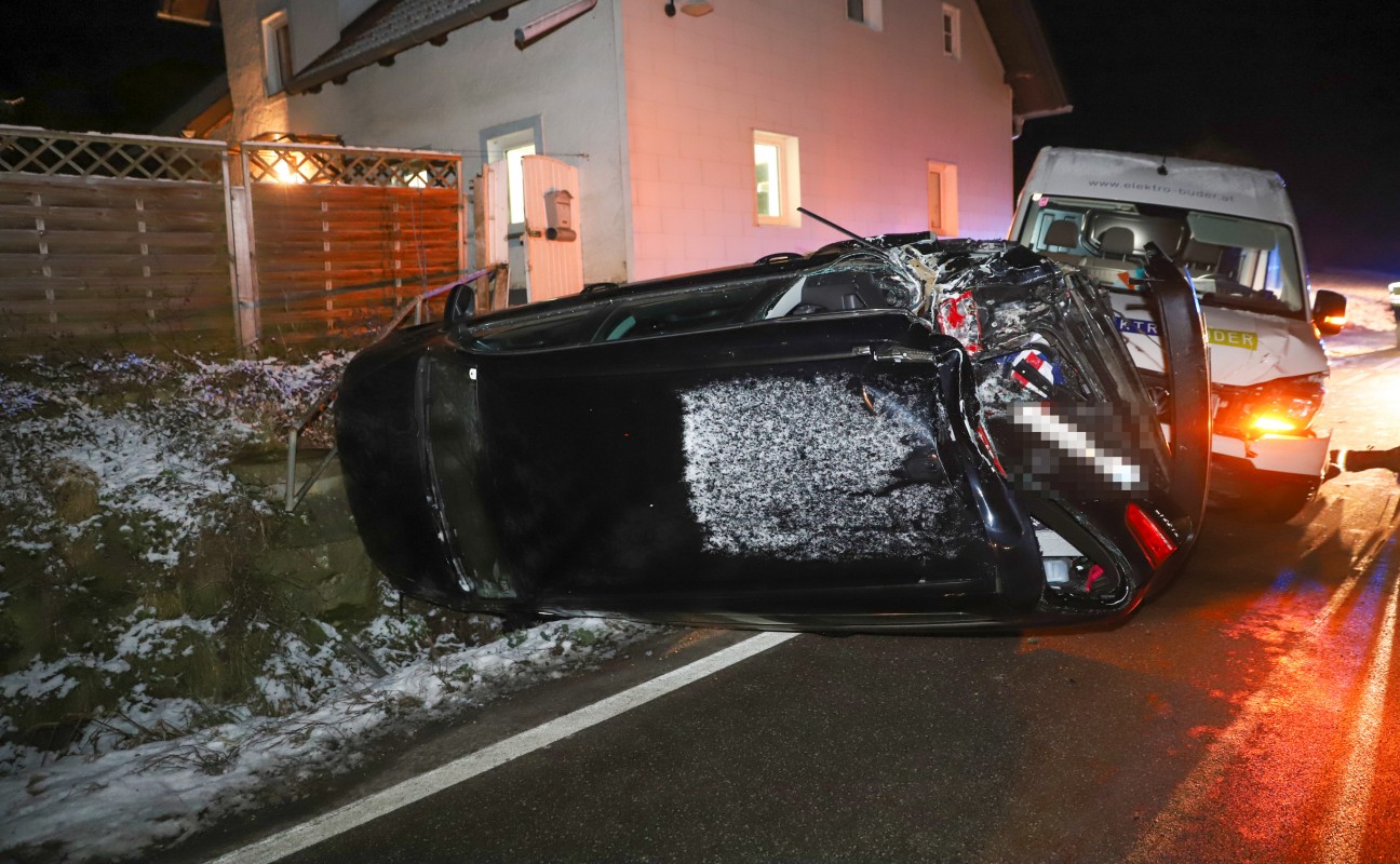 Kleintransporter in Offenhausen von Straße abgekommen und mit abgestelltem Auto kollidiert