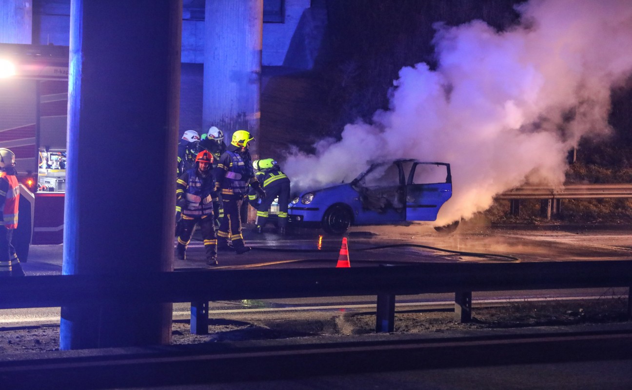 PKW auf Welser Autobahn bei Marchtrenk in Flammen aufgegangen