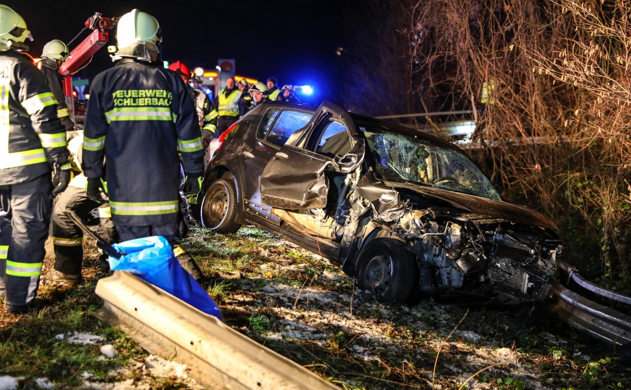 Auto auf Pyhrnpass Straße in Schlierbach schwer verunfallt