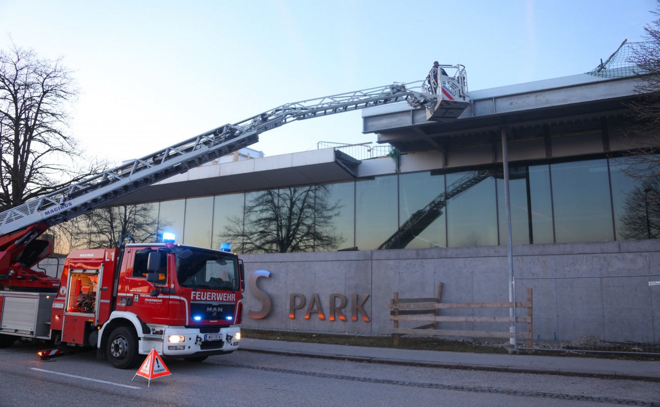 Sicherungsarbeiten nach Sturmschaden auf Baustelle in Wels-Pernau