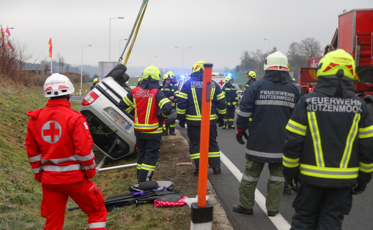 Autolenkerin bei Verkehrsunfall auf Salzkammergutstraße in Regau schwer verletzt