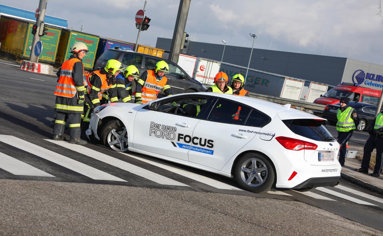 Neues Auto bei Unfall in Marchtrenk überschlagen und schwer beschädigt
