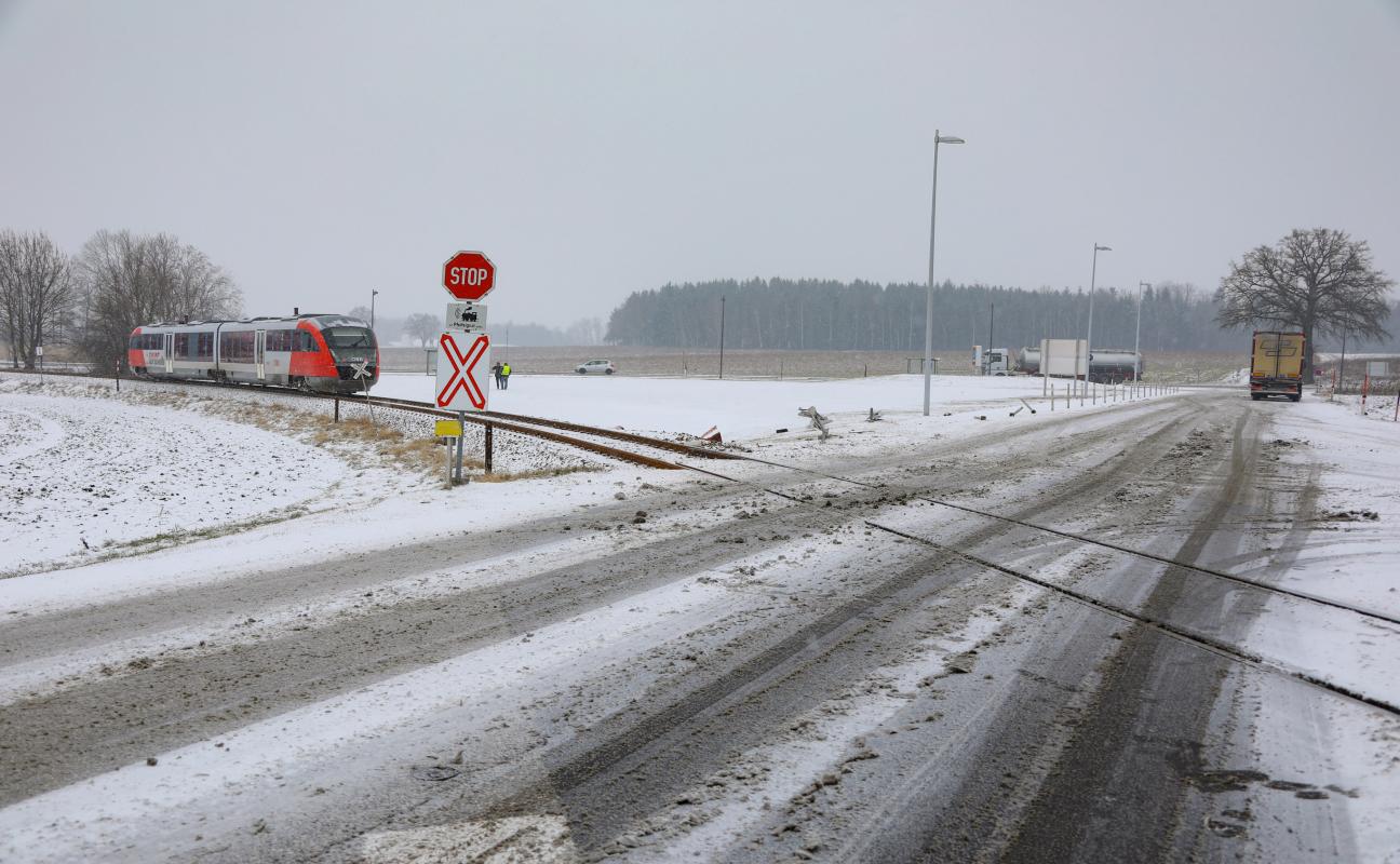 Kollision zwischen Regionalzug und LKW auf Bahnübergang in Sattledt endet glimpflich
