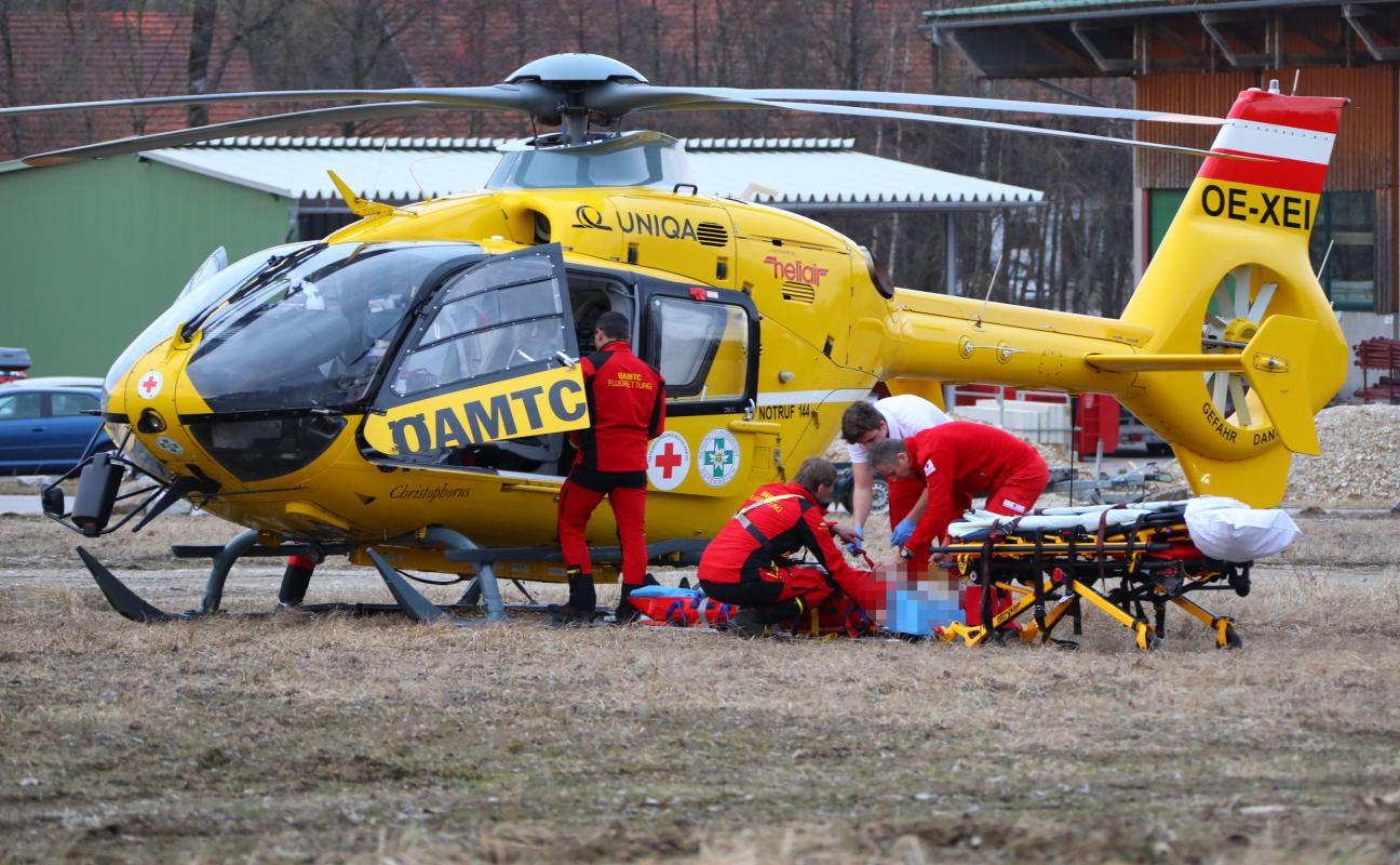 Notarzthubschrauber nach Arbeitsunfall in Haag am Hausruck im Einsatz
