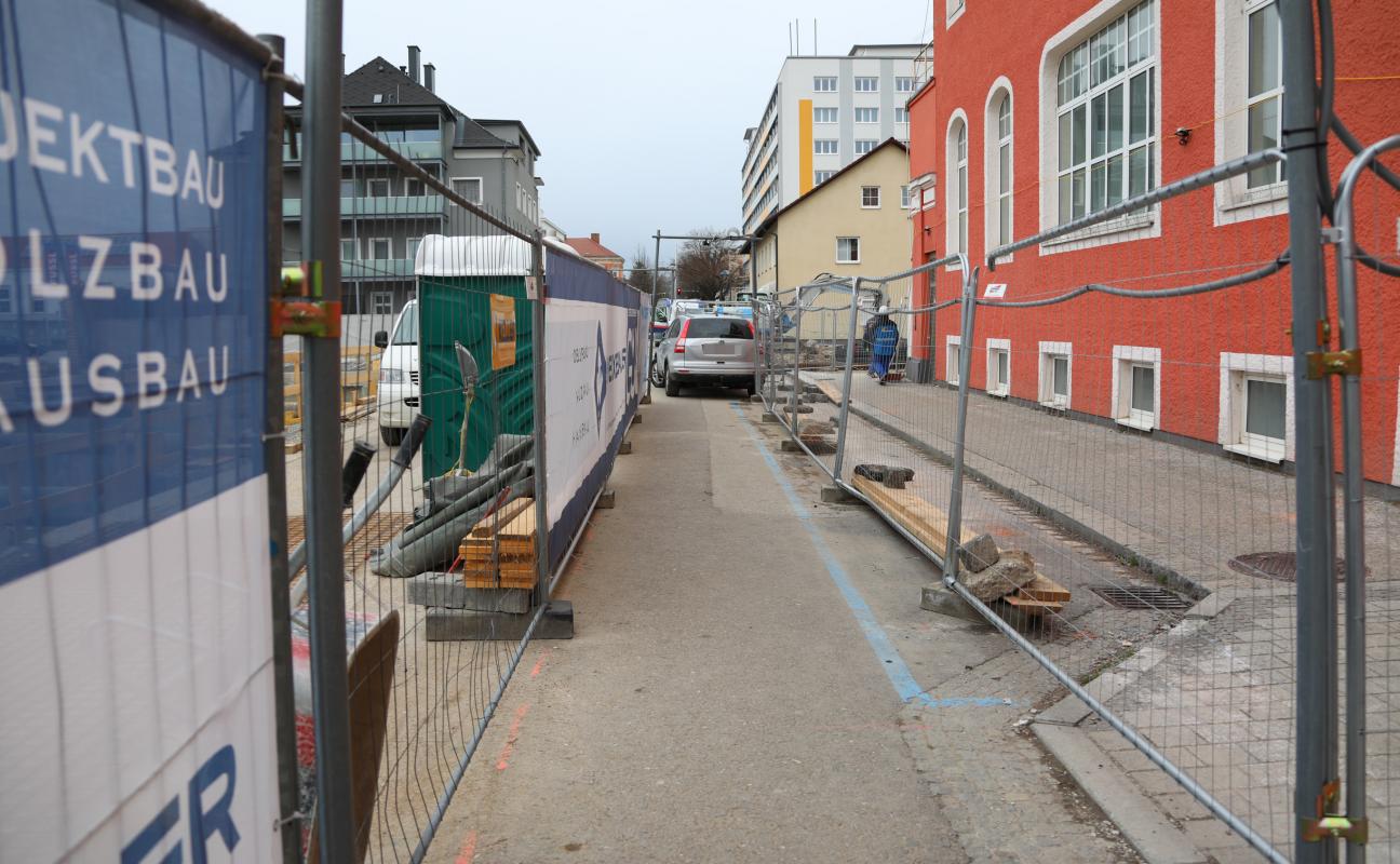Autolenker blieb auf Baustelle in Wels-Innenstadt mit Auto im Fußgängerdurchgang stecken