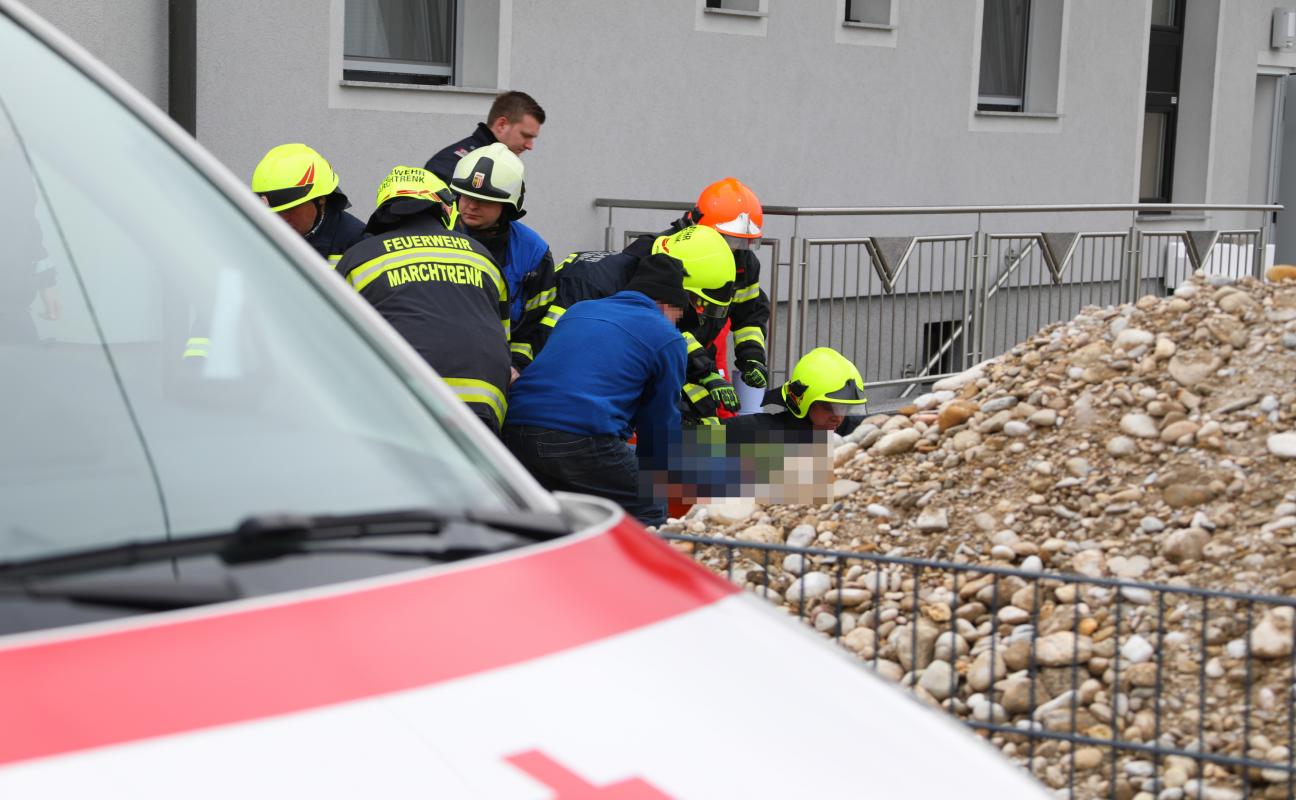 Personenrettung in Marchtrenk: Mann auf Pool-Baustelle in eine Baugrube gestürzt