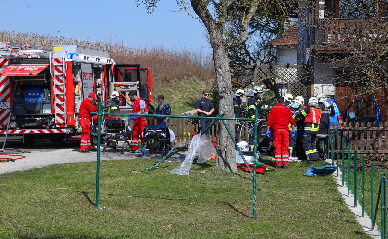 Auto bei Unfall in Pennewang frontal gegen Hausmauer gekracht