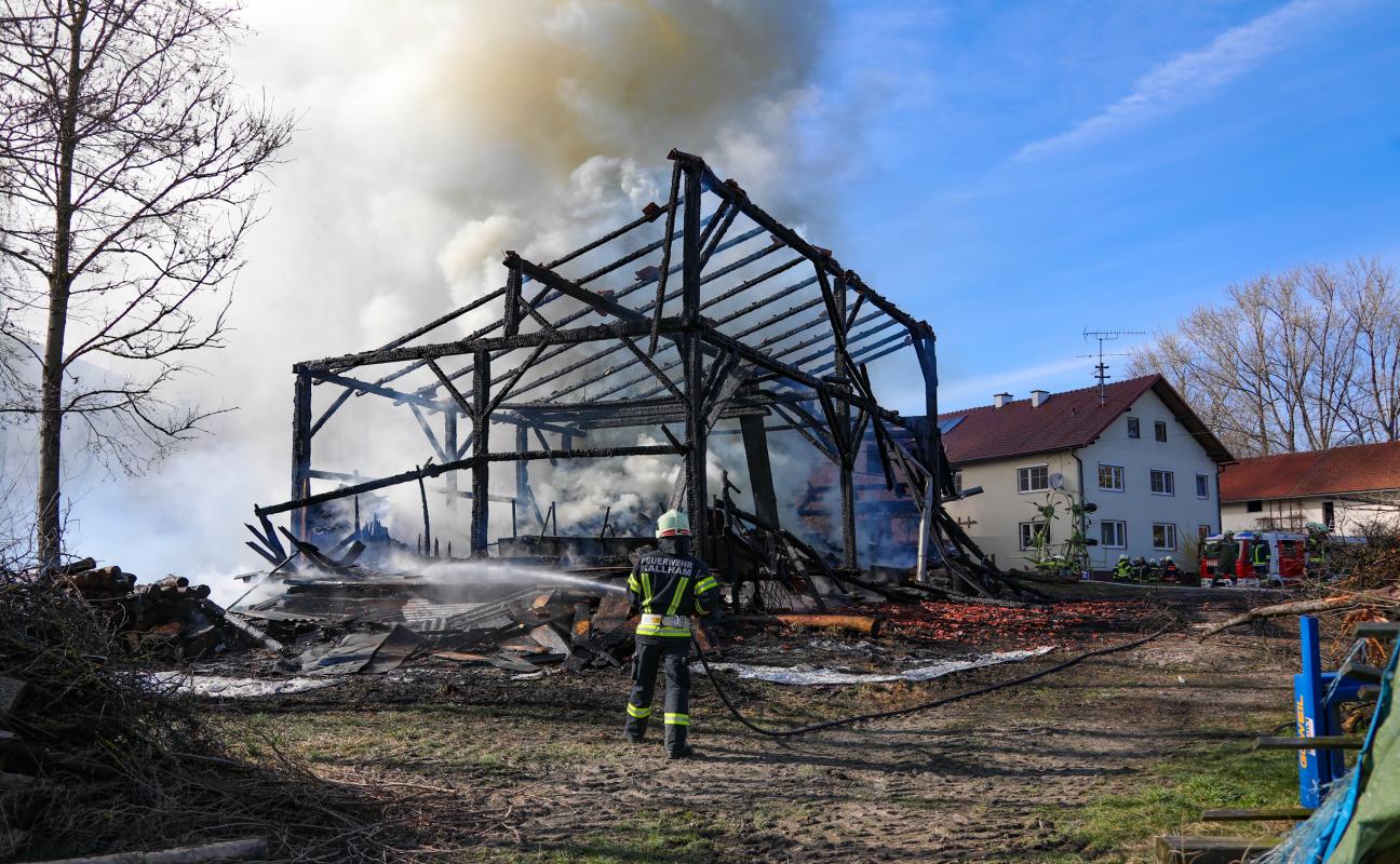 Zwölf Feuerwehren bei Brand eines landwirtschaftlichen Nebengebäudes in Kallham im Einsatz