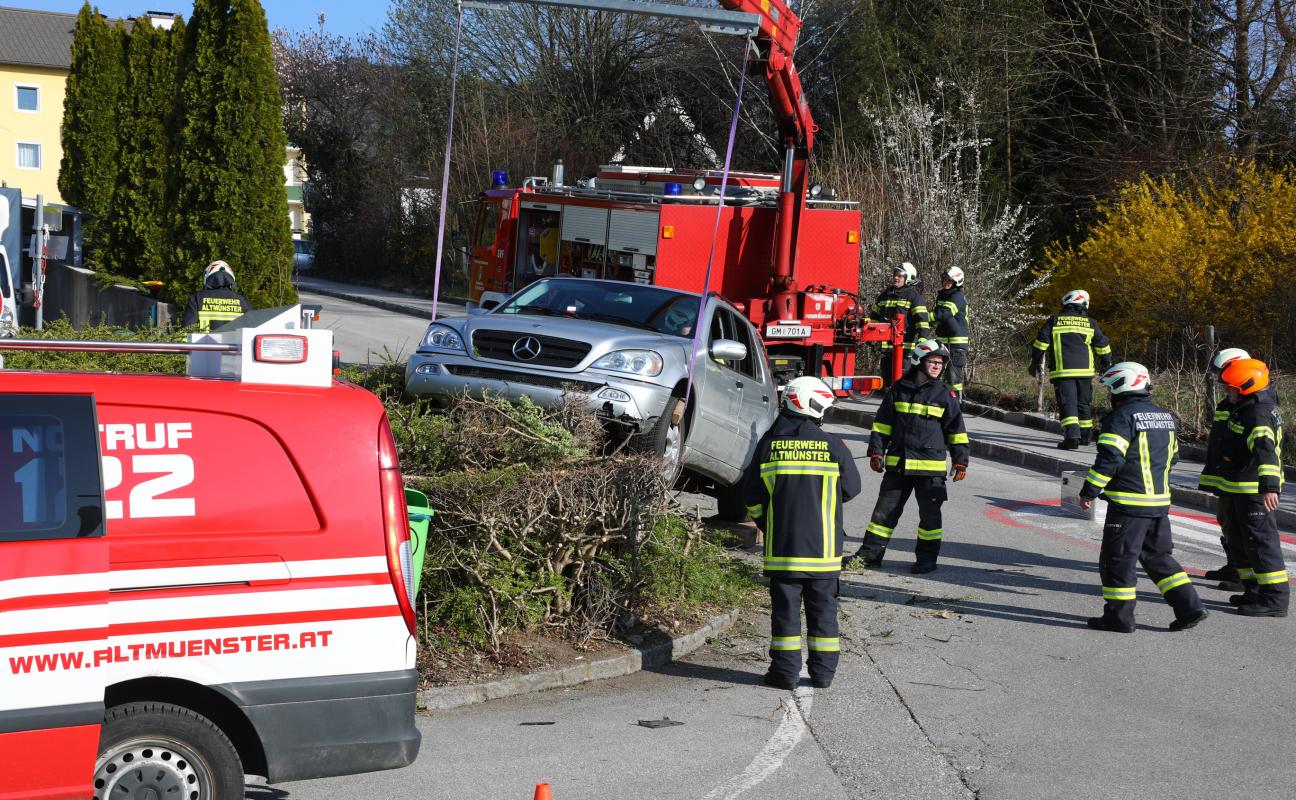 Auto bei Verkehrsunfall in Altmünster in Sträuchern gelandet